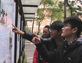 記者看到西南大學(xué)人流較大的傳媒大廣場(chǎng)擺放著印有實(shí)踐照片的展板,上面有團(tuán)隊(duì)成員在實(shí)踐中的照片、實(shí)踐感言以及活動(dòng)花絮等,而展板前均聚集了不少學(xué)生。帶隊(duì)老師李海峰對(duì)記者表示,希望能在全國(guó)高校中形成一種樂(lè)于實(shí)踐的氛圍,倡導(dǎo)大學(xué)生積極開(kāi)展社會(huì)實(shí)踐。