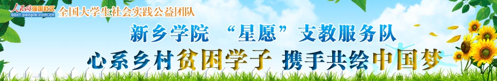 “星愿”義務支教服務隊于2009年成立,現(xiàn)有支教志愿者120余名。除多次開展暑期社會實踐支教活動外,在校期間他們還堅持每周二下午赴貧困小學義務支教活動。五年來,他們參與支教的次數(shù)達100余次,9000余小時課時。他們與新鄉(xiāng)市紅旗區(qū)平原小學、封丘縣潘店鎮(zhèn)老莊小學建立了長期幫扶關(guān)系,還在延津縣榆林鄉(xiāng)大榆林小學、夾堤小學建立了愛心支教服務基地。