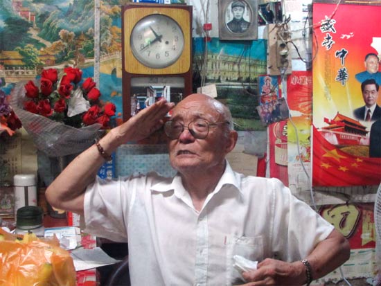 在陳相德家中,墻上掛的是中國地圖、中國工農紅軍地圖,堂屋里掛著中國偉人畫像、開國十大元帥畫像,顯示出他對抗戰歷史的銘記。陳相德在抗日戰場上穿越槍林彈雨,沐浴硝煙彌漫,親眼目睹過日軍飛機被擊落,F在提起當年的情形,他仍無比激動。