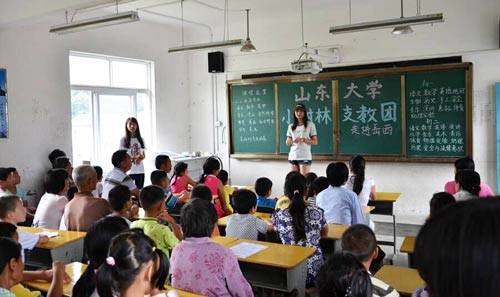 山東大學“小樹輪”支教團分成六個小分隊,分赴四川、陜西、安徽、云南、山東、重慶的貧困縣進行支教。支教期間,基礎課與特色課平行開設,幫助拓寬孩子們的知識面。團隊還利用課余時間,對當地留守兒童進行抽樣家訪,并進行心理輔導。