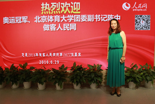 奧運冠軍、北京體育大學團委副書記陳中做客人民網強國論壇(代睿 攝)