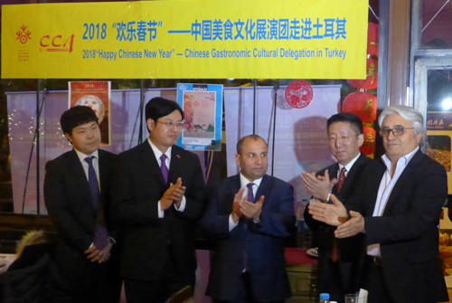 在開幕式上,Gultekin Karatas副區長首先對中國文化部“歡樂春節”美食展演團的到來表示熱烈歡迎,他高度評價了中國“一帶一路”倡議給中土關系帶來的新發展,表示土耳其政府非常支持兩國經濟、文化的往來,也期待著美食文化的交流給兩國人民帶來的親情和口福。鐘洪糯副總領事在致辭中表示,“歡樂春節”活動就是要建立一個平臺,使大家一起共度中國春節、共享中國文化、共建和諧世界,中國和土耳其都具有悠久燦爛的歷史文化,中國在絲綢之路的最東端,土耳其在最西端,今晚的活動就是用美食拉近兩國人民之間的距離。邊疆副會長在講話中對中國駐伊斯坦布爾總領事館和伊斯坦布爾瑪爾特帕區政府對此次活動的大力支持表示感謝,希望能夠用中國名廚的精湛技藝為“一帶一路”的建設發展和中土兩國人民友誼做出貢獻。