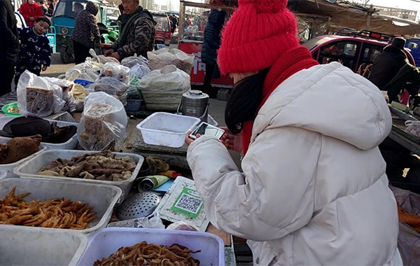 “小伙子,手機帶了嗎?掃一掃,你就用微信付款吧!”這是攤販大爺?shù)穆曇簟=K徐州市豐縣的“閆家小旭”對家鄉(xiāng)集市上菜攤前的二維碼,頗為吃驚,不敢相信。她說:“不到一年時間,發(fā)現(xiàn)家鄉(xiāng)變化真得好大。中國特色社會主義‘走進新時代’,農(nóng)村里的樓房越蓋越高,院子也越來越寬敞。鄉(xiāng)間小道變成平整寬闊的水泥路,飛奔的火車也通往家鄉(xiāng)。手機支付走進鄉(xiāng)間集市攤販,西紅柿、茄子、黃瓜、豆角等反季節(jié)蔬菜也成為春節(jié)餐桌上的家常菜。”