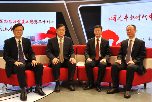 座談會第二場邀請國務院發(fā)展研究中心副主任王一鳴、中國社科院信息情報院黨委書記姜輝、天津大學馬克思主義學院院長顏曉峰、首都師范大學出版社總編輯楊生平做客人民網強國論壇,圍繞學習《三十講》所關注的“社會主義意識形態(tài)”、“馬克思主義思想方法”、“全球治理合作”等話題與網友進行在線交流。與會嘉賓一致認為,《三十講》統(tǒng)分結合、邏輯清晰、全面系統(tǒng)地闡述了習近平新時代中國特色社會主義思想的重大意義、科學體系、豐富內涵、精神實質和實踐要求,是學習領會習近平新時代中國特色社會主義思想的重要理論讀物。