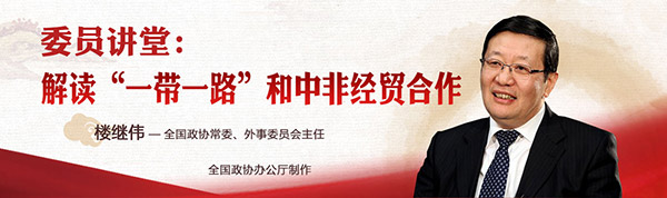 全國政協辦公廳制作的“委員講堂”第二期節目,3月2日在全國政協官方網站等平臺播出。本期節目由全國政協常委、外事委員會主任樓繼偉主講,主題是《共建與共享——關于“一帶一路”和中非經貿合作的思考》。
