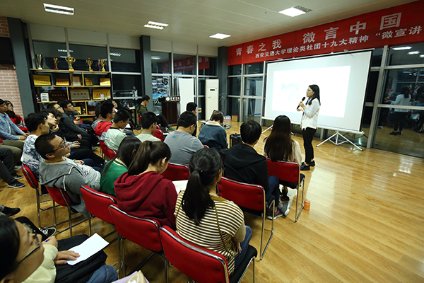 錄制前的電話初采時,聽聞李婧竟是比記者僅大一歲的博士生,我訝異不止。清脆活潑的聲音,大方清晰的談吐,正是一場場宣講留在她身上的印記,也帶著遠遠超出她這個年紀的穩重和堅定。從2017年作為第一批宣講人加入西安交通大學學生微宣講團開始,從山村小學到重點高校,從工廠車間到領軍企業,從邊防軍營到繁華都市,李婧的足跡遍布22個省(市、自治區),參與宣講工作。